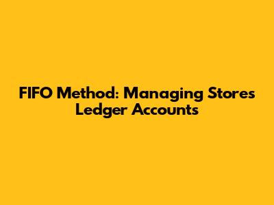 FIFO Method: Managing Stores Ledger Accounts