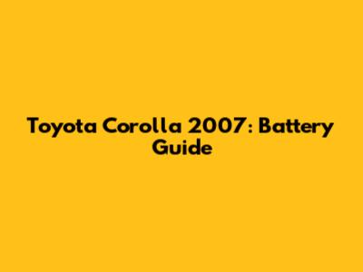 Toyota Corolla 2007: Battery Guide